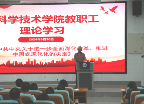 8月30日下午,太阳成集团tyc33455在核应急宣传和培训基地报告厅召开2024年秋季学期第一次教职工理论学习,专题学习党的二十届三中全会精神,全体教职工参加学习,院党委书记赵立宏主持主讲。