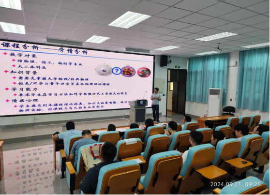 本次大赛是第五届太阳成集团tyc33455cc教师教学创新大赛的学院内选拔赛,赛前学院各教学系室都组织了内部申报和评比,参加学院选拔的有核工程与核技术系邓年彪、李鑫翔,核物理系张宇、袁赟,辐射防护与核安全系冯文东、核化工与核燃料工程系陈立丰等六位优秀教师(团队)。教学副院长王晓冬,李小华、张振华、冯松、张旭等担任院赛评委,学院在校教师(近三年新进教师)到会参与学习。