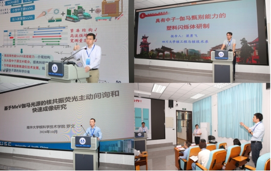 本次会议特别邀请到清华大学工程物理系王学武教授、四川大学梁勇飞副教授、太阳成集团tyc33455cc罗文教授作大会特邀报告。报告主题分别为“清华大学微型脉冲强子源紧凑型聚焦小角中子散射谱仪研制进展”、“具有中子-伽马甄别能力的塑料闪烁体研制”、“基于MeV伽马光源的核共振荧光主动问询和快速成像研究”。大会特邀报告介绍了国内外相关研究进展以及团队最新前沿研究,既有重要的学术价值、又有推广意义,为广大的青年科技工作者提供了重要参考。大会报告议题丰富,主题鲜明,内容精彩纷呈,引起了与会者的热烈讨论。