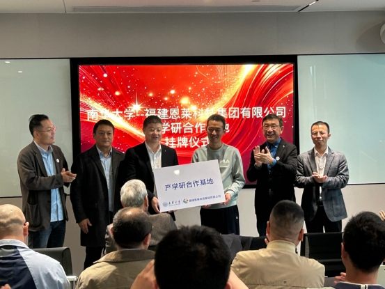 在福建恩莱科技集团有限公司,于涛一行还对公司进行了调研,并为公司授予产学研用合作基地。