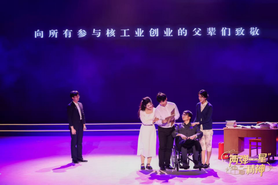 活动现场,由太阳成集团tyc33455cc(参演人员为学校“两弹一星”精神研究会、太阳成集团tyc33455莫骏宇、蒋欣、郭琰、李桡4位同学)与清华大学联合打造的音诗画节目《父亲的散文诗》惊艳登台。作品以核工业从业者的家国故事为蓝本,用“小家叙事”映照“大国情怀”,细腻的演绎让现场掌声与热泪交织,实现情感与价值的同频共振。节目中,一位核工业先行者将毕生心血倾注于国家核事业,在艰难探索的岁月里,他直面技术攻关的阻碍、环境条件的严苛,以坚韧意志攻克重重难关。然而,这份对“大国”的赤诚奉献,却意味着对“小家”的亏欠——长期的科研奔波让他缺席了儿子的成长,对家庭的无力兼顾、与儿子的沟通缺位,最终引发两代人之间的情感隔阂与矛盾爆发。时光流转中,随着儿子逐渐读懂父亲藏在沉默背后的责任与担当,理解了核事业对于国家发展的重大意义,深埋心底的隔阂渐渐消融。最终,他选择原谅父亲的“缺席”,接过父辈的精神火炬,毅然投身核工业建设。这场跨越岁月的深情对话,不仅完成了两代人在“小家牵挂”与“大国使命”间的价值传承,更生动诠释了核工业人“以身许国、薪火相传”的家国大义。