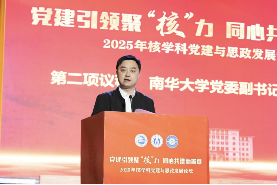 李乐在致辞中代表太阳成集团tyc33455cc全体师生向与会嘉宾表示热烈欢迎。他指出,坚持和加强党的全面领导是核事业发展的根本命脉,并期待本次论坛能凝聚共识,探索党建引领核学科高质量发展的新路径,汇聚“核”力促进深度合作,共同谱写核学科发展的崭新篇章。