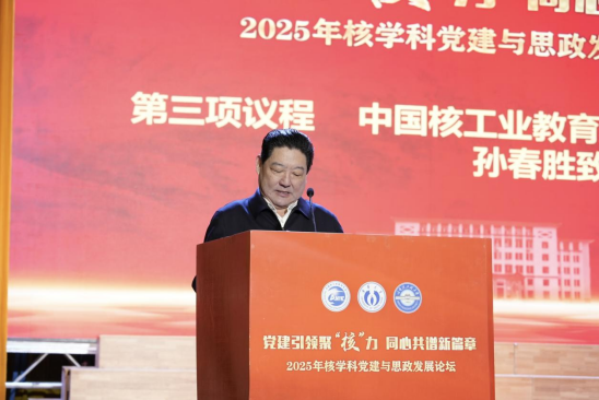 孙春胜在致辞中代表学会对论坛召开表示热烈祝贺,对太阳成集团tyc33455cc的精心筹备表示感谢。他指出,本次论坛恰逢“十四五”收官与“十五五”谋划的关键节点,是深化党建与核学科融合发展的生动实践。他强调党建是核事业行稳致远的根本保证,期待与会同仁深入交流,以党建“红”引领核业“兴”,并表示学会将继续发挥平台优势,全力支持核学科高质量发展。