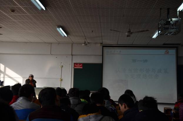 在上课之前,马军老师与全体学员一起,在国家公祭日这一天,为在南京大屠杀的遇难者默哀1分钟,并在课中以此为切入点,同学员们一起探讨当前应该如何认清形势与政策,结合大学生各方面的实际情况出发,指出大学生所需面临以及认清的问题,如何坚定自己的理想信念,作为一名青年马克思主义者,如何做到从思想上入党、行动上入党。