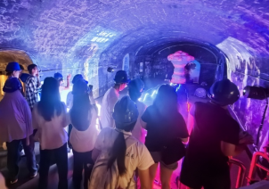团队还参观了地下人防工程,被老一辈核工业人以身许国、艰苦创业的事迹深深打动。在跨越半世纪的伟大时空中,几代核工业人不忘初心、牢记使命,推动我国核工业从无到有、从小到大,谱写辉煌篇章。参观后,同学们齐聚一堂,高声歌唱《没有共产党就没有新中国》。