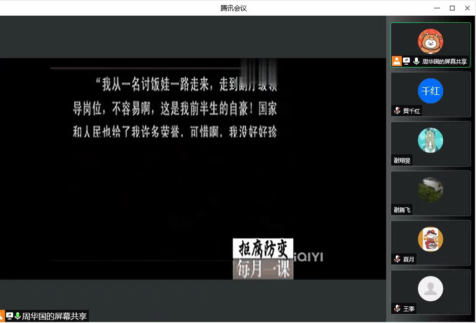 活动第一阶段,全体人员集体观看了廉洁警示教育专题片《守住第一次》。该片通过一件件具有代表性的典型案例,揭示了违法违纪“第一次”从小到大、从量变到质变的演变过程,第一次收受贿赂、第一次接受吃请等等,这些看不起眼的“第一次”使他们的人生轨迹走向犯罪深渊,最后失去前程、失去亲情、失去健康、失去自由,甚至导致生命的悲剧。通过观看警示教育片,进一步增强了广大教职工,特别是党员干部廉洁自律意识和拒腐防变能力。大家纷纷表示,在今后的工作中,将自觉坚守“第一次”防线,不越道德红线,不踩法纪底线,永葆共产党员清正廉洁本色,依法依纪依规办事,履职尽责,担当作为。