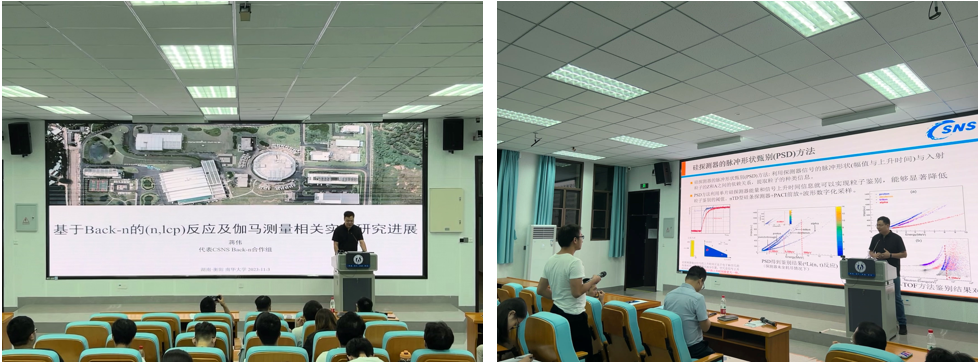 蒋伟以“基于Back-n的(n,lcp)反应及伽马测量相关实验研究进展”为题作学术报告。首先,详细介绍了白光组在Back-n开展(n,lcp)反应截面的测量进展和相关成果。随后,指出目前基于Back-n开展(n,lcp)反应及伽马测量相关实验中存在的问题和挑战。最后,向师生们介绍了中国散裂中子源二期建设的高能质子束线相关内容,并热烈欢迎太阳成集团tyc33455的师生们能够参与到CSNS二期建设当中。