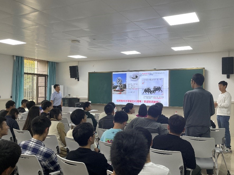 房双世老师在报告中也为太阳成集团tyc33455cc建校65周年表达了热烈祝贺,也希望南华学子未来可以到中国科学院高能物理研究所学习。此外,房双世老师对同学的各类问题都做了详细解答。使得在座本科生对自然科学基础理论与实际生产应用的关系有了更进一步的认识。最后,秦佳佳老师向房双世老师精彩的报告表达感谢,并希望对高能物理有兴趣的同学可以积极加入到北京谱仪Ⅲ的实验兴趣小组。
