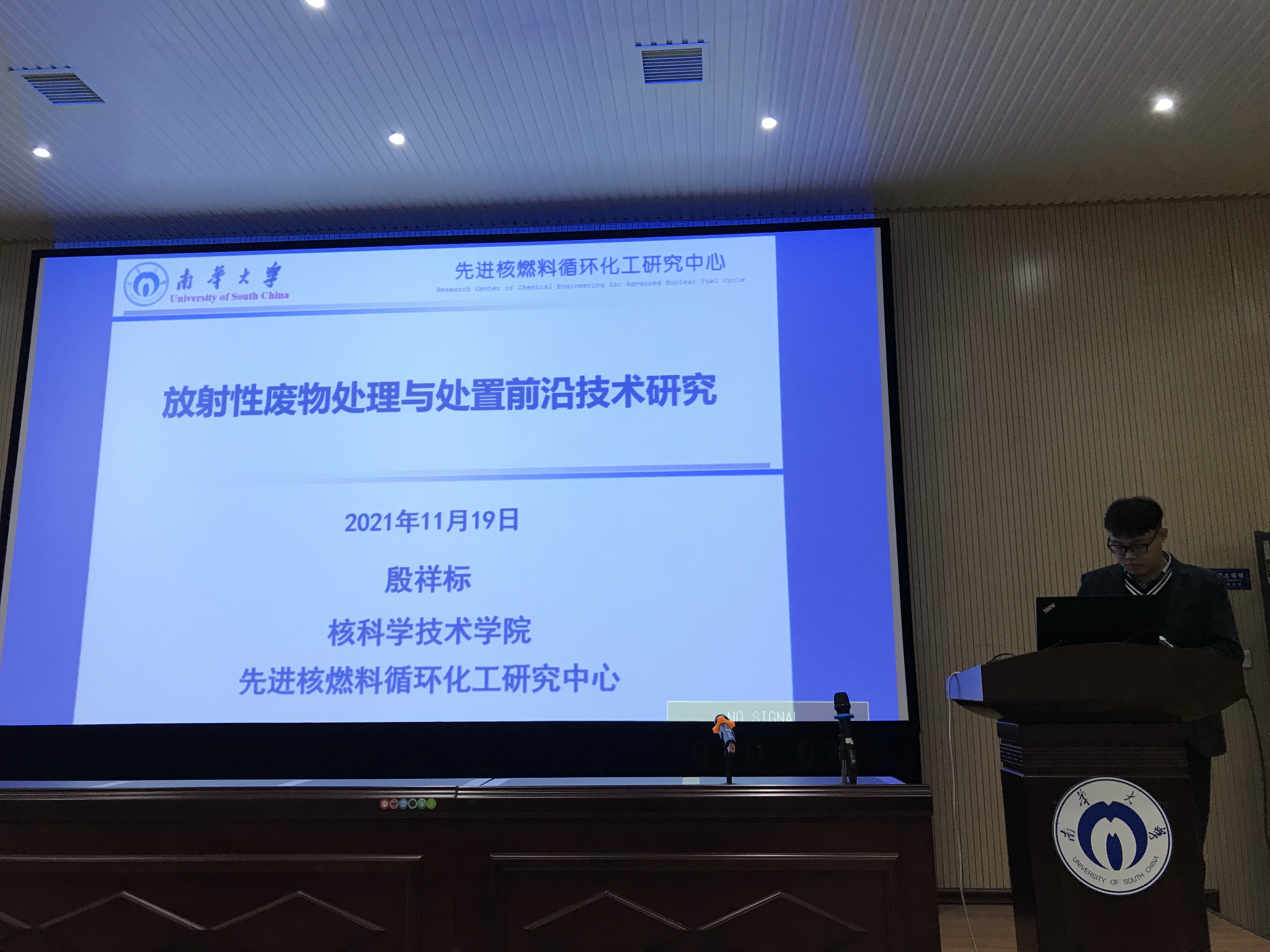 2021年11月18日晚7点,殷祥标教授受邀在太阳成集团tyc33455虚拟仿真中心做了题为“放射性废物处理与处置前沿技术研究”的学术报告。本次报告由太阳成集团tyc33455核化工与核燃料工程系系主任王孟教授主持,吸引了众多师生前来参加。