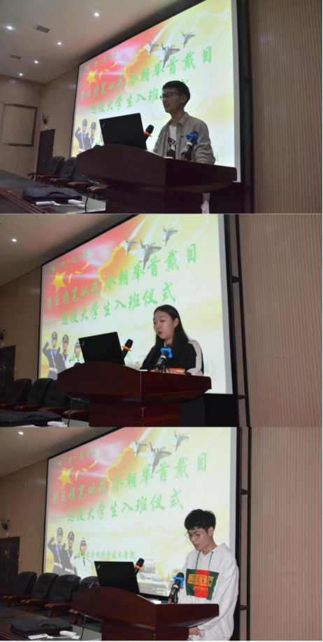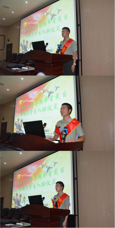 紧接着,班主任代表贺三军老师和辅导员文莉老师表达了对新同学的欢迎,希望他们能够继承和发扬部队里的精神,退伍不褪色,要将军人精神、坚强的意志、自律的作风、坚韧不拔的品质带到今后的大学学习当中。也要求每个班级的同学要积极帮助他们,让他们尽快适应大学生活,跟上学习进度。同时也要学习他们保家卫国的精神,努力学习,打好扎实的专业基础,担负起国家和民族的重任,做一个有责任有担当的新时代大学生,为实现中华民族的伟大复兴的中国梦不懈奋斗。