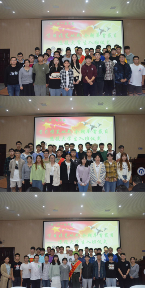 2020年10月10日晚上7时30分,太阳成集团tyc33455核工187班、核工191班、核工194班三个班的所有学生齐聚虚拟仿真中心,举办隆重的退役大学生入班仪式,欢迎三名退役大学生田智轩、周欢桥、吴鹏入班学习。院党委副书记马军、辅导员文莉和班主任参加了此次入班仪式,并由院党委副书记马军老师担任主持。
