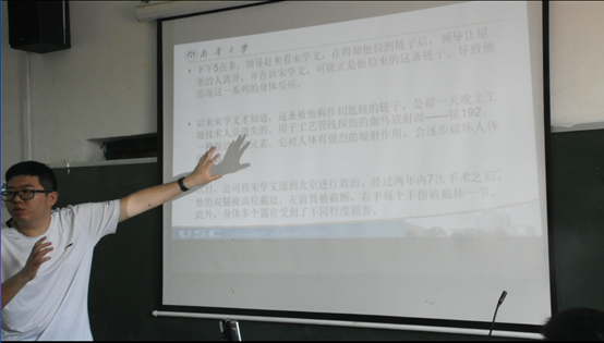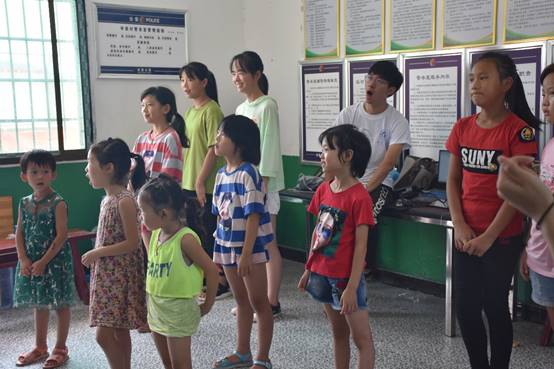 下午,团队成员周子强与孩子们一起互动交流,留下了成长寄语,并播放了爱国主义教育宣传片,之后约好在晚上的文艺汇演中与我院成员一起表演《国家》手语操。当晚,我院共表演二十四式简化太极拳和《国家》手语操两个节目,博得满堂喝彩。