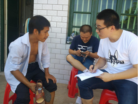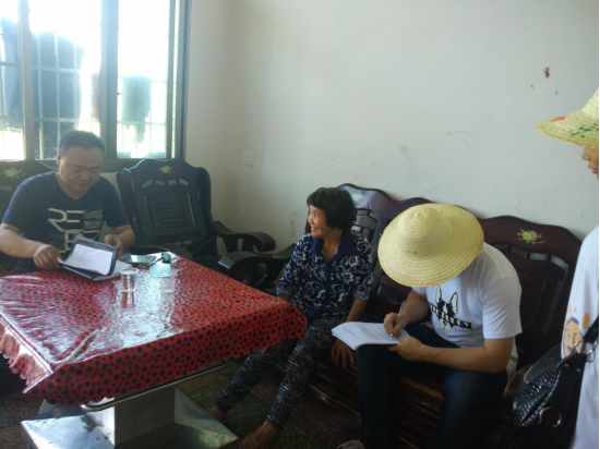 完成对接工作后,小组指导老师带领调研小组在跟村委会了解了全村的贫困户数量情况后,跟随当地村委会进入各户贫困农户家里,对村民的吃穿住用、家庭主要人口情况、生活收入支出情况考察。村民们对小组的工作很是支持。