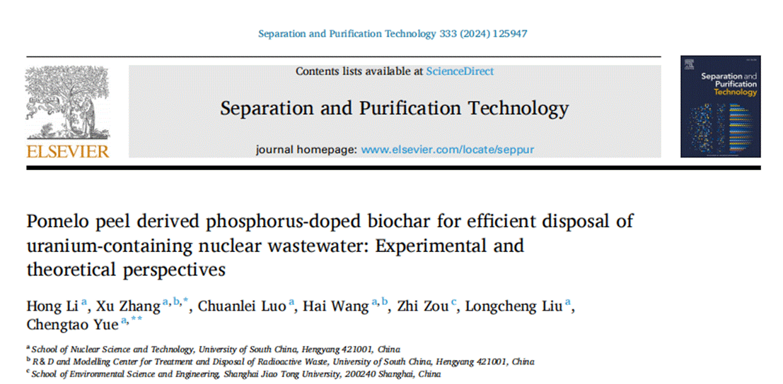中心教师张旭在Separation and Purification Technology上发表重要学术论文