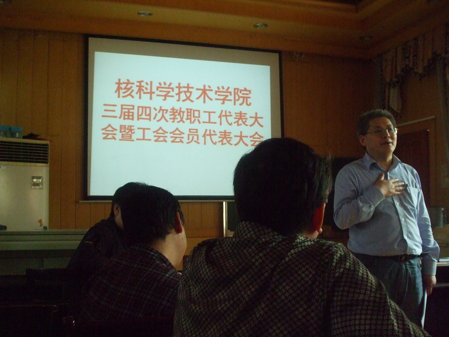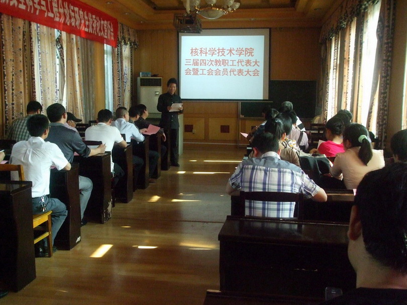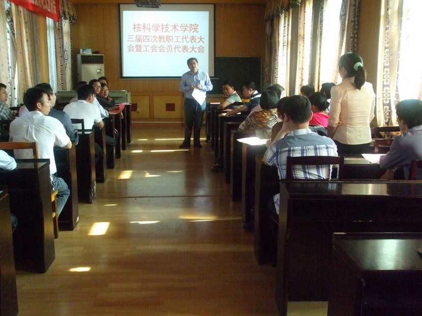 2013年4月18日16:00分至17:20分,太阳成集团tyc33455全体教职工在太阳成集团tyc33455四楼学术厅召开“太阳成集团tyc33455三届四次教职工代表大会暨工会会员代表大会。会议由王振华副院长主持。会议由以下四部分组成:(1)全体起立秦国歌;(2)王振华宣读中国教育工会太阳成集团tyc33455cc委员会“关于太阳成集团tyc33455召开三届四次教职工暨工会会员代表大会的批复(南华工发[2013]12号)”;(2)肖德涛院长做2012年度学院工作报告,报告内容主要包括2012年度太阳成集团tyc33455科研、教学立项和获奖情况,分析了学院在发展过程中面临的挑战和机遇;(3)马军老师作2012年4月18日至2013年4月18日工会收支财务报告,并简要介绍工会此时间段内举行的探望、慰问职工,校运动会、拨河比赛、时装秀等工会活动;(4)全票通过选举“刘和福同志”为太阳成集团tyc33455分工会主席。