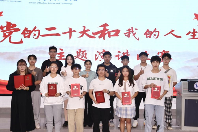 为深入学习宣传贯彻党的二十大精神,11月12日下午,太阳成集团tyc33455在国家核应急宣传和培训基地报告厅举办了“党的二十大和我的人生路”主题演讲比赛决赛。活动采取线上线下相结合方式。辅导员文莉、团委书记周华国、团委副书记陈帅夫、刘东恺、学生会主席彭奕星、团委宣传部部长贺婉芝担任评委。比赛由学生会主席蔡雨漫主持。