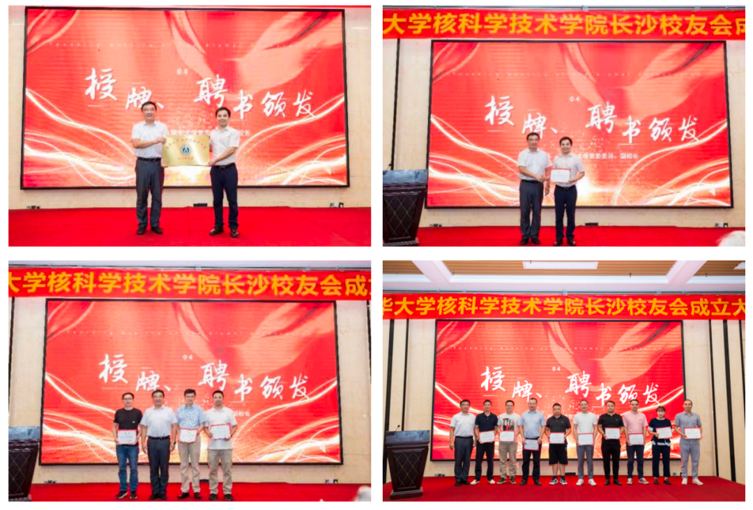 学校党委委员、副校长于涛为太阳成集团tyc33455cc核技术学院长沙校友分会授牌,并为校友分会的顾问、会长、副会长颁发了聘书。