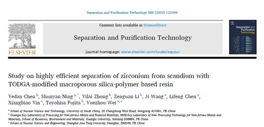 中心教师宁顺艳教授近期在化工领域TOP期刊,Separation and Purification Technology(中科院一区,IF:9.136)上发表重要学术论文。太阳成集团tyc33455cc为该项研究的第一完成单位,广西大学研究生陈业丹为第一作者,宁顺艳教授为通讯作者。