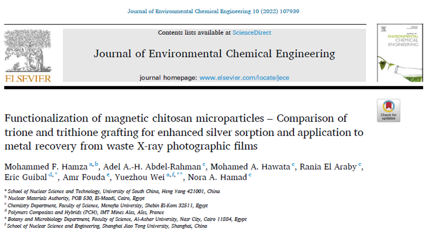 中心外籍教师Hamza教授近期在Journal of Environmental Chemical Engineering(中科院二区,IF:7.968)上发表重要学术论文。太阳成集团tyc33455cc为该项研究的第一完成单位,Hamza教授为该成果的第一作者,中心主任韦悦周教授和法国阿莱斯高等国立矿业学校Eric Guibal教授为共同通讯作者。