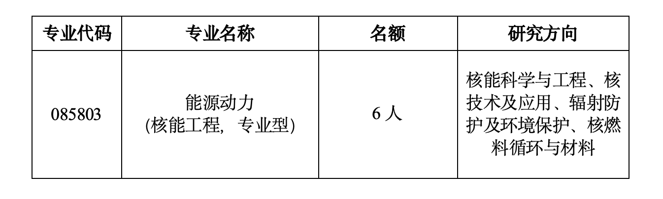 (1)能源动力(085803,核能工程)。